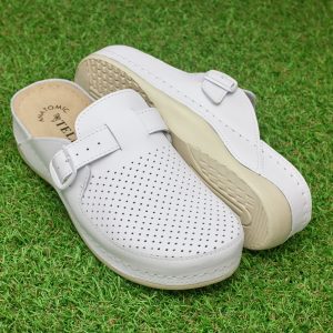 Pentru profesioniștii care activează în spitale, clinici sau farmacii, respectarea codului vestimentar este prioritară. Oferim saboți medicali disponibili preponderent în nuanțe de alb, care reflectă standardele de igienă și curățenie. Aceste modele sunt echipate cu tălpi anatomice care absorb șocurile, protejând coloana vertebrală în timpul turelor prelungite. Pe lângă albul clasic, colecția include și variante în culori discrete sau perforate, adaptate pentru a asigura ventilația optimă în medii cu temperaturi ridicate.