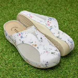 Saboti medicali piele dama „Tellus” 25-061, Alb cu flori