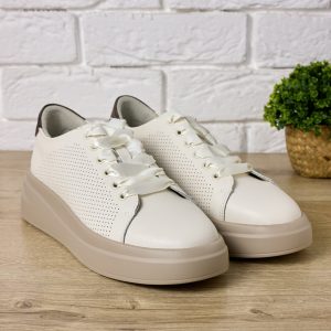 Pantofi piele “Tellus” 72-01, Alb cu flori