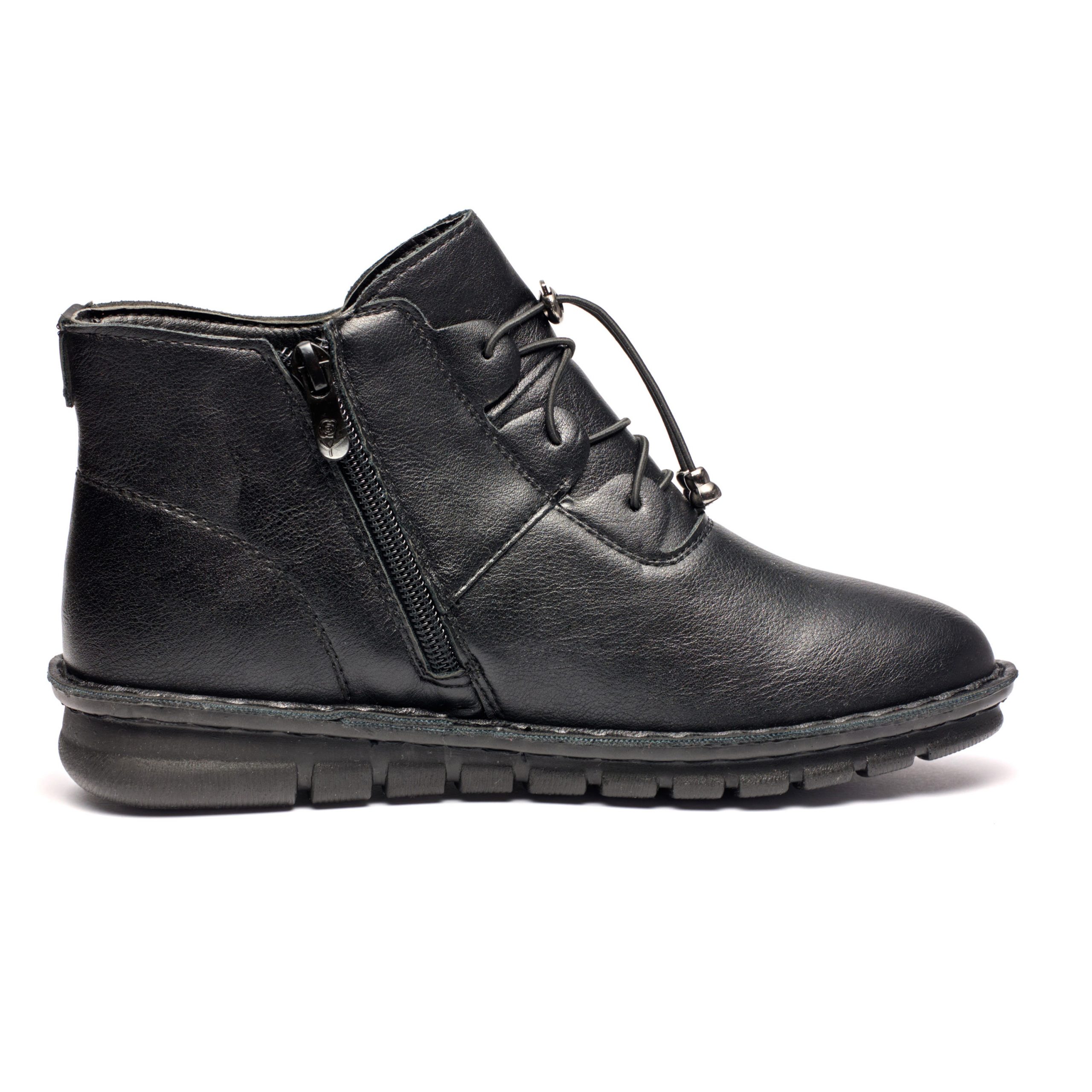 Ghete cu plenitudine crescută, corespund completitudine 8 pe grila dimensională. Fabricate din piele eco de calitate inalta neagră , blână în interior. Un branț anatomic moale care oferă confort la mers, împreună cu o talpă din poliuretan ușoară și flexibilă, fac ghetele Tellus ideale pentru fiecare zi. Modelul are fermoar pentru o încaltare ușoară. Dimensiuni branț 36-23cm, 37-23.5cm, 38-24cm, 39-25.5cm, 40-26cm, 41-26.5cm. Inaltime toc 3 cm Completitudinea pantof 8