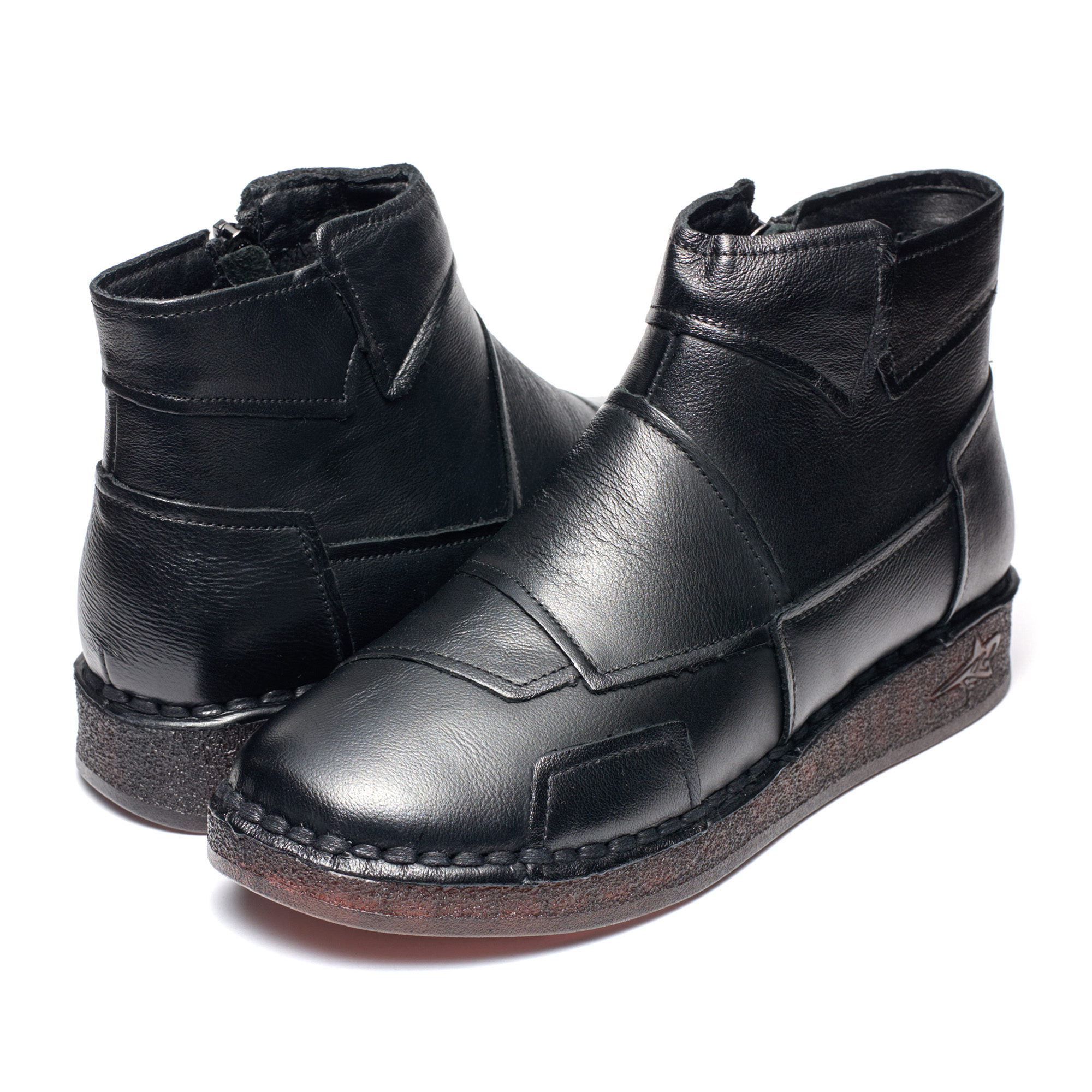 Ghete Tellus cu plenitudine crescută, corespund completitudine 9 pe grila dimensională. Fabricat din piele naturală italiană neagră, cu inserții din