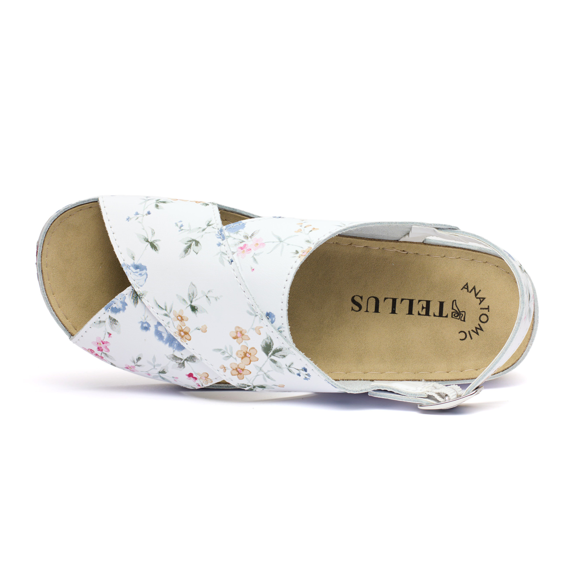 Sandale piele Tellus 25-060, Alb cu flori
