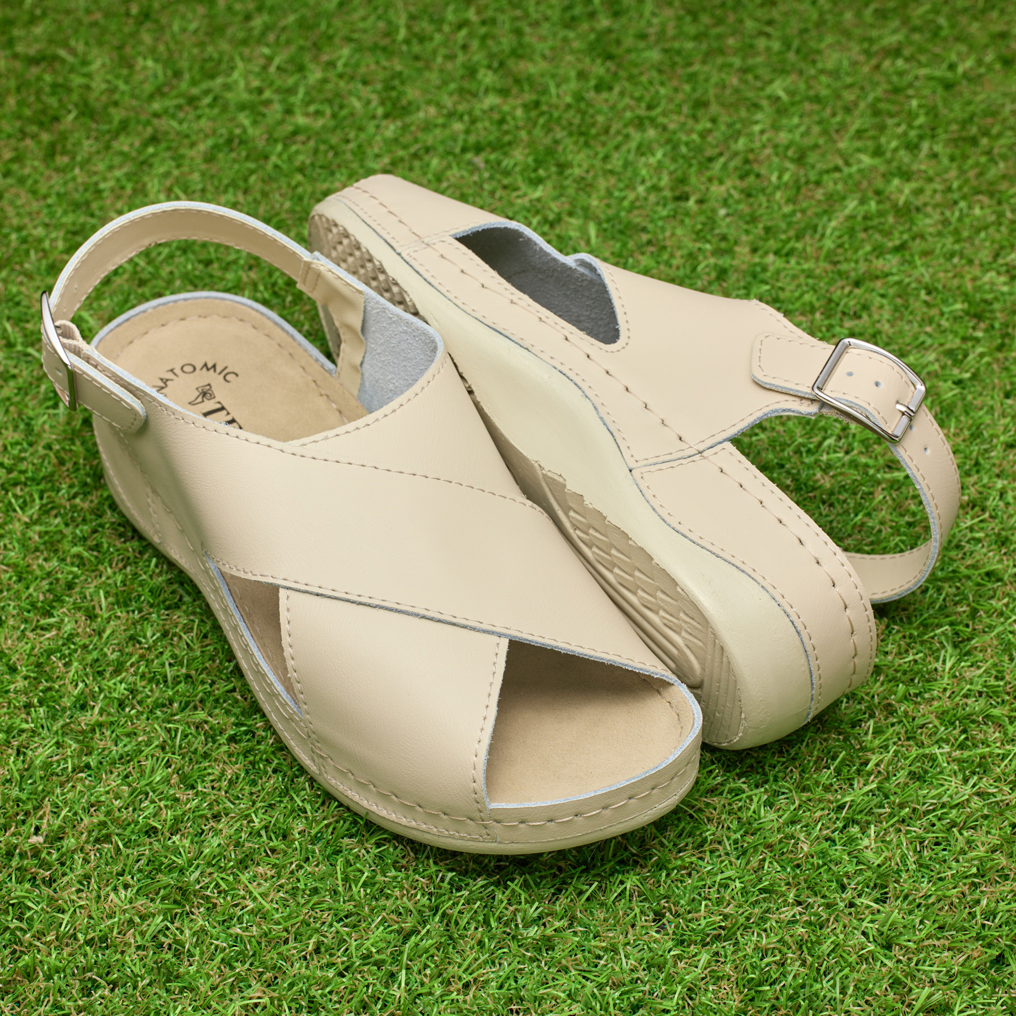 Model 25 – sabotii si sandalele cu brant anatomic „Tellus” sunt confectionate din nubuc artificial si natural. Cu un design discret și elegant, se potrivesc cu orice garderobă de vară și arată grațios pe picior. Pantofii sunt ideali pentru purtarea de zi cu zi și pot fi folosiți și ca schimb de pantofi. Branțul moale vă permite să uitați de senzația de disconfort și oboseală, deoarece are efect de memorare anatomice ale piciorului, distribuie uniform sarcina pe acesta și oferă, de asemenea, masaj în timpul mersului. Forma deschisă nu împiedică mișcările degetelor, iar talpa durabilă din poliuretan absoarbe bine și protejează împotriva vibrațiilor dăunătoare.